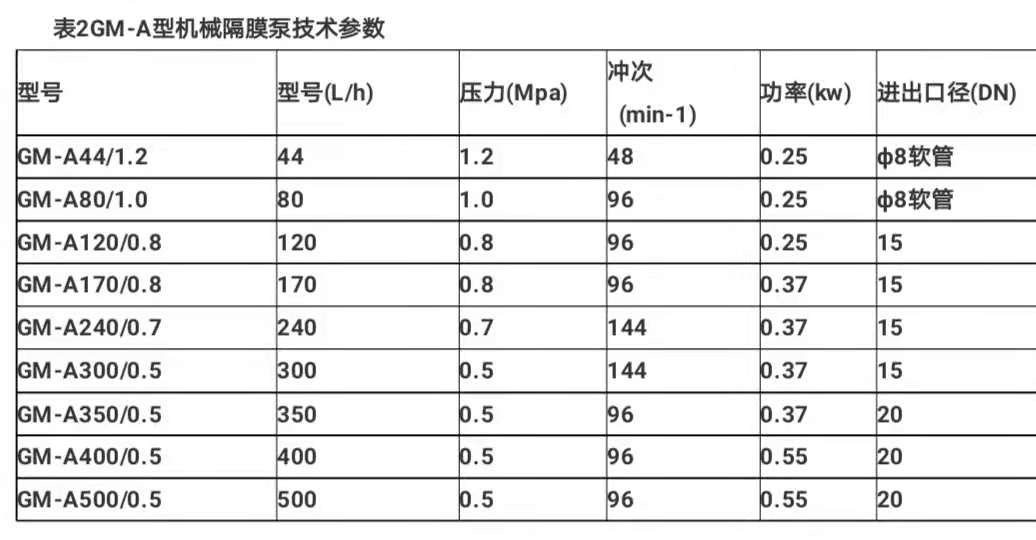 GM-A機械隔膜計量泵流量范圍:0-200L壓力范圍: 0-1.0MPA電機功率: 0.25KW 0.37KW驅動系統:兩相、三相電機 防爆 變頻防護等級: IP54流量控制:手動控制,自動控制(接收4-20mA信號)材料泵頭: SUS304、SUS316.、PVC.、PTFE、PP、PVDF隔膜: PTFE襯橡膠單向閥: SUS304,、SUS316,、PVC,、PTFE、PVDF閥